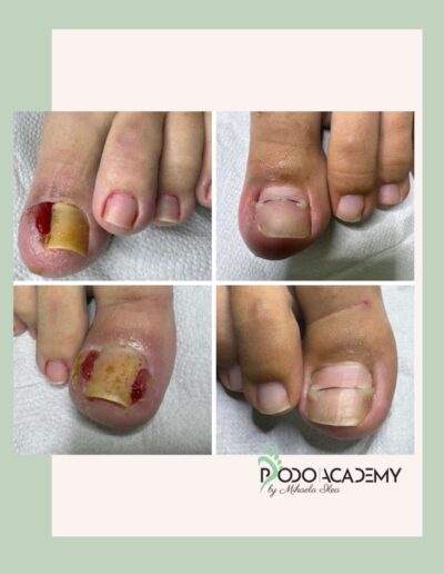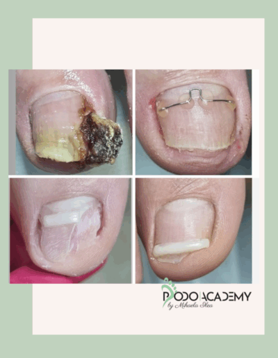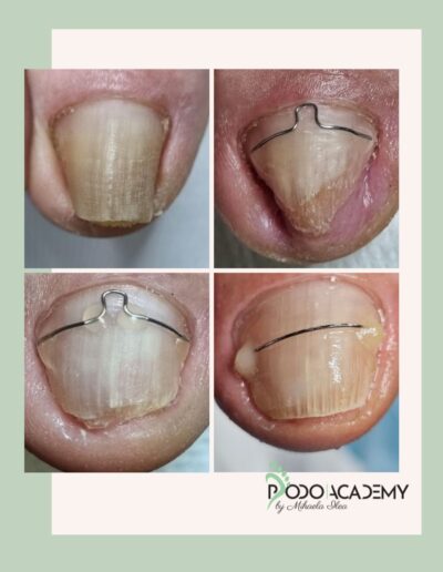 Ziua 1 – 09:00 – 13:00 Teorie 14:00 – 18:00 Practica, igienizarea unghiilor si pregatirea lor pentru aplicarea sistemelor de corectie, masurarea, pregatirea si aplicarea corecta a sistemelor in functie de tipul si gradul de incarnare, tehnica de aplicarea a sistemului de corectie Podobrance, aparat podologic din sarma ortodontica.